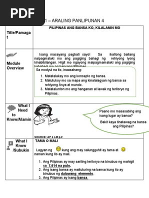 Ang Pilipinas ay isang bansa dahil may mga naninirahan ditong tao may sariling teritoryo may pamahalaan at may ganap na kalayaan. Balik aral Review Mga tanong B.