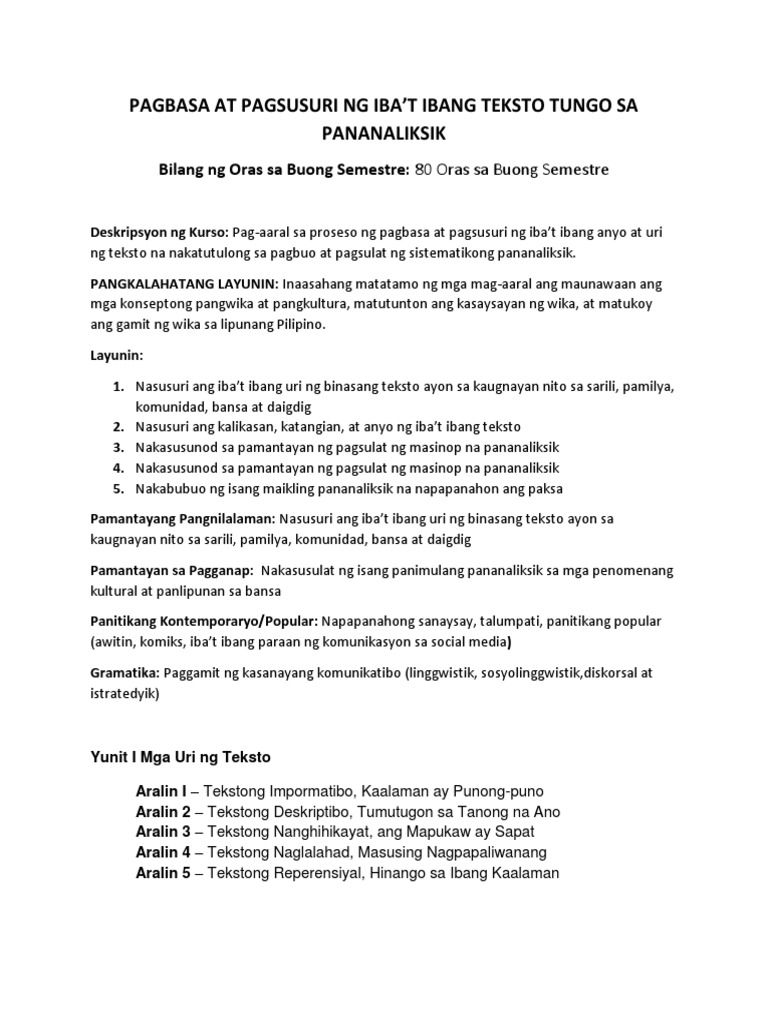 Doc Shs Core Pagbasa At Pagsusuri Ng Iba Jenar Datinggaling Academia Edu