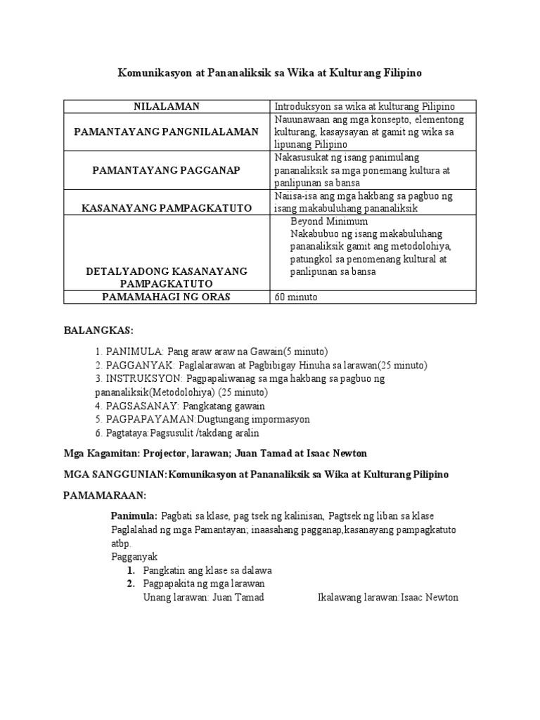 Komunikasyon At Pananaliksik Sa Wika At Kulturang Filipino