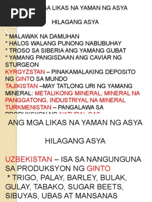 SAIKL 2LIKAS Ito AN ay NA AMYAN YAMAN malalawak at matatabang lupa na angkop. Ang Silangang Asya ay isa sa mga rehiyon ng Asya na maaaring tumukoy sa paraang heograpikal o kultural. View LIKAS NA YAMANpptx from AA 1LIKAS NA YAMAN NG ASYA 1.