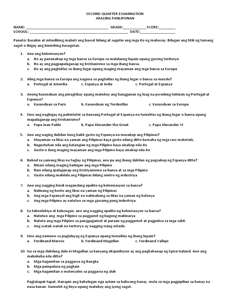 Isang lugar o maliit na bansa na kontrolado ng isang makapangyarihang bansa ang pamamahala a. Bagaman mayroon ang opurtunidad na ito maraming mag-aaral sa Europa ang nag-aalangan tungkol sa mga pakinabang ng pag-aaral sa ibang bansa. Alin sa mga pahayag ang may katotohanan tungkol sa kalagayang pampolitika ng mga Filipino sa panahong kolonyal.