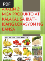 Mga Produkto at Kalakal sa IbatIbang Lokasyon ng Bansa. Maihahambing mo ang mga produkto at kalakal na matatagpuan sa iba-ibang lokasyon ng bansa 3. Pakinabang sa Kalakal at Produkto Ang Pilipinas ay sagana sa likas na yaman.
