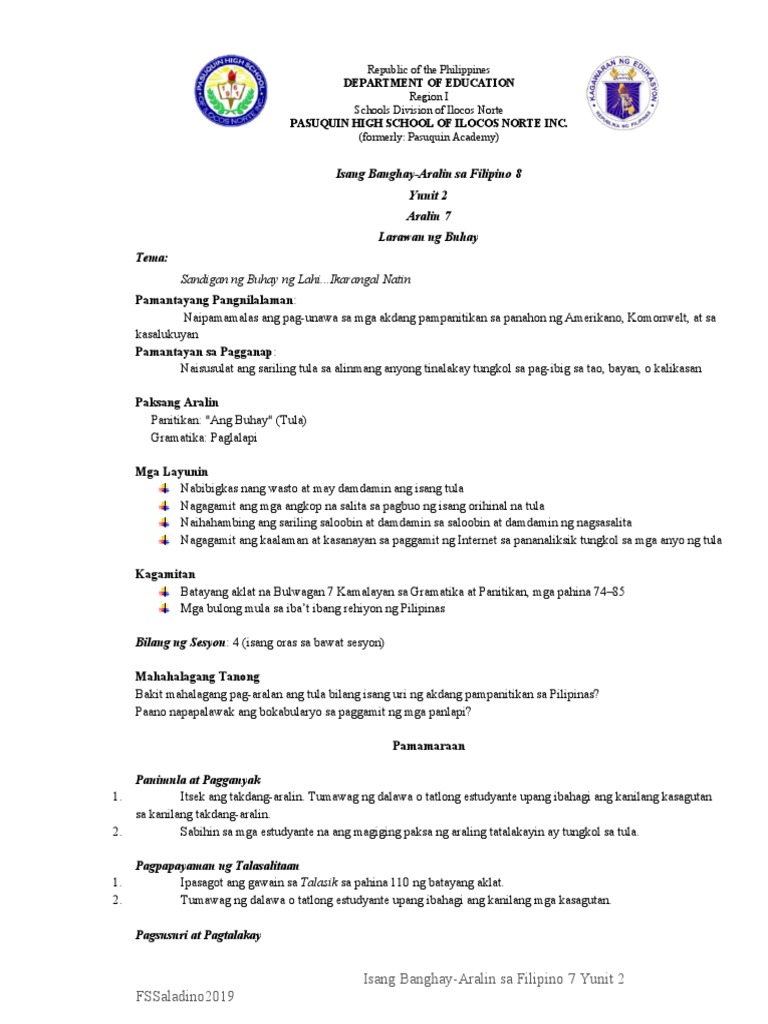 Sa pag-iisip mo ikaw bay malaya. Kaya naman magbibigay kami ng mga tula tungkol sa karanasan ng mga tao dulot ng pandemya. Wikang Filipino ang aking pangalan Ipinanganak ko itong kalayaan Ako ang ina at siyang dahilan Ng pagkakaisa at ng kasarinlan.